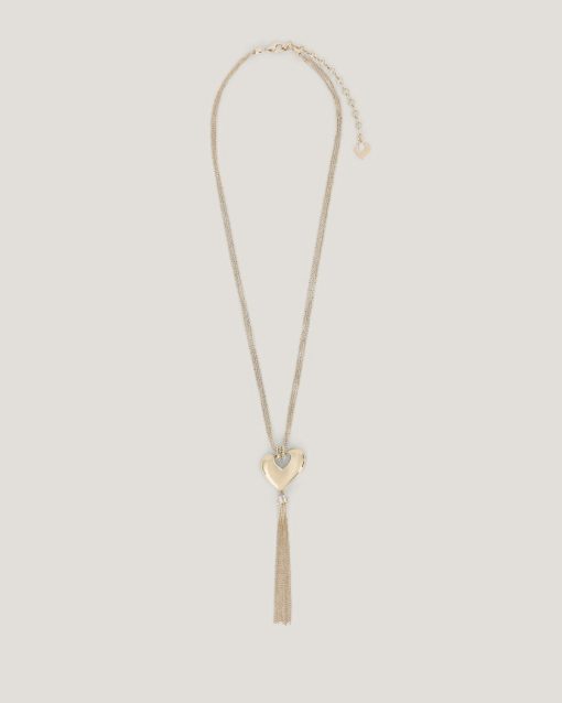 GENNY Women’s Long Necklace With Sculptural Heart And Chain Tassel
