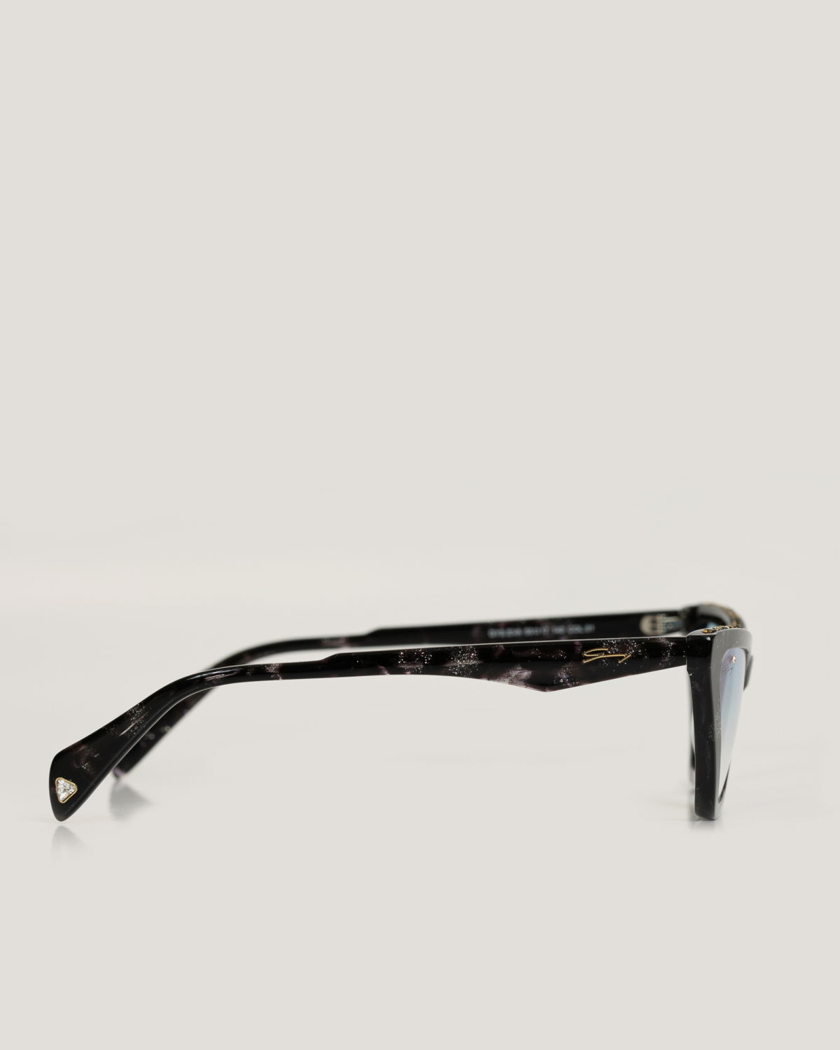 Cat-eye acetate sunglasses are a true statement of class and sophistication. The lightweight acetate frame gently hugs the face, accentuating the cat-eye style, while the front frame sparkles with rhinestones, capturing the sunlight in a charming glow. The temples feature Genny’s golden logo, synonymous with Italian luxury and quality. They’re the perfect accessory to elevate a chic and sophisticated look.