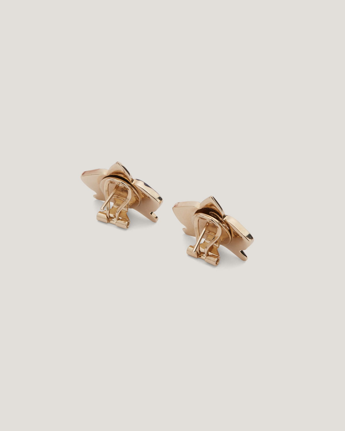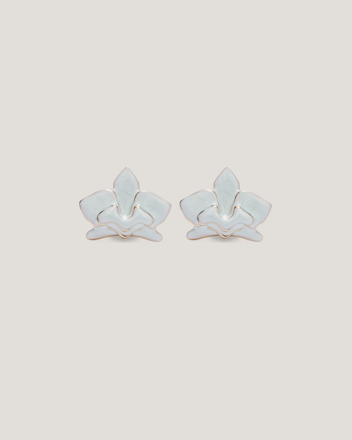 These clip-on earrings feature a delicate orchid motif, enameled in a dark shade that adds a touch of elegance and modernity. Expertly crafted in Italy, they combine a three-dimensional design with a glossy finish, enhancing facial beauty with a refined accent. Perfect for completing both daytime and evening looks, these earrings are the ideal accessory for those seeking jewelry that expresses femininity and character. A versatile and distinctive piece that adds a touch of contemporary luxury to any outfit.