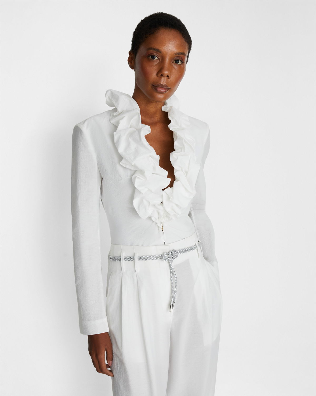 The laminated leather rope-effect belt adds a touch of elegance and originality to every outfit. Crafted with meticulous attention to detail, the belt features an intricate silver rope pattern that captures the eye with its metallic splendor. Its versatility makes it perfect for completing a casual chic look or adding a touch of class to a more formal dress. Whether you’re looking to define the waist of a dress or add a touch of glamour to a pair of jeans, this belt is the perfect accessory to express your individuality with style.