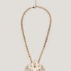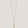 A sensuous long necklace featuring a polished gold-tone heart pendant, adorned with radiant details and a tassel made of fine chain strands. Its elongated silhouette and luminous finish make it the perfect accessory to elevate eveningwear or refined, modern ensembles.