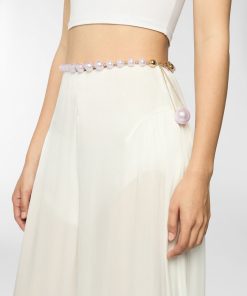 A sensuous long necklace featuring a polished gold-tone heart pendant, adorned with radiant details and a tassel made of fine chain strands. Its elongated silhouette and luminous finish make it the perfect accessory to elevate eveningwear or refined, modern ensembles.