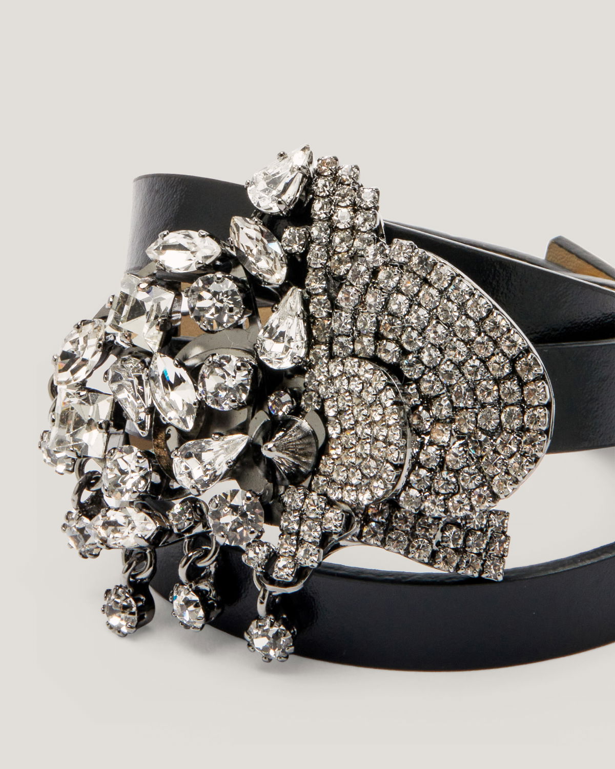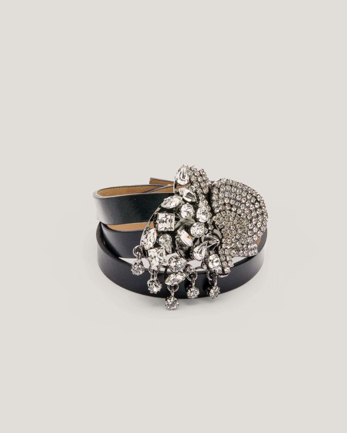 The “Elegant Orchid Lux Bracelet” is a luxurious piece of jewelry featuring a woven leather strap and a central orchid adorned with sparkling gemstones. A contrasting crystal chain and dangling pendants create a luminous effect with every movement. It is a work of elegance and refinement, perfect for those looking to add a touch of luxury to any occasion.