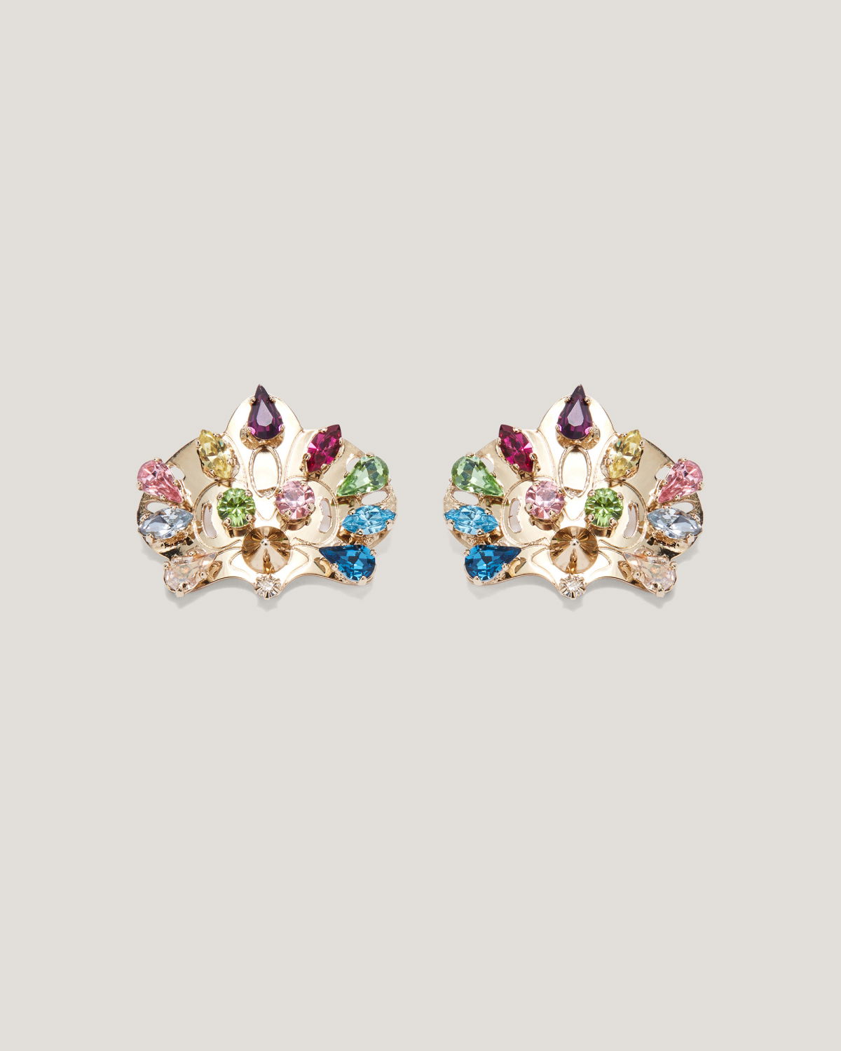 Orchids, flowers known for their beauty and grace, are made even more enchanting by the presence of multicolored rhinestones that embellish them. The rhinestones, with their brilliant and varied colors, add a touch of vibrancy and joy to the earrings.