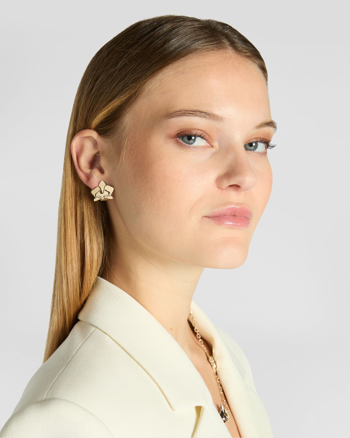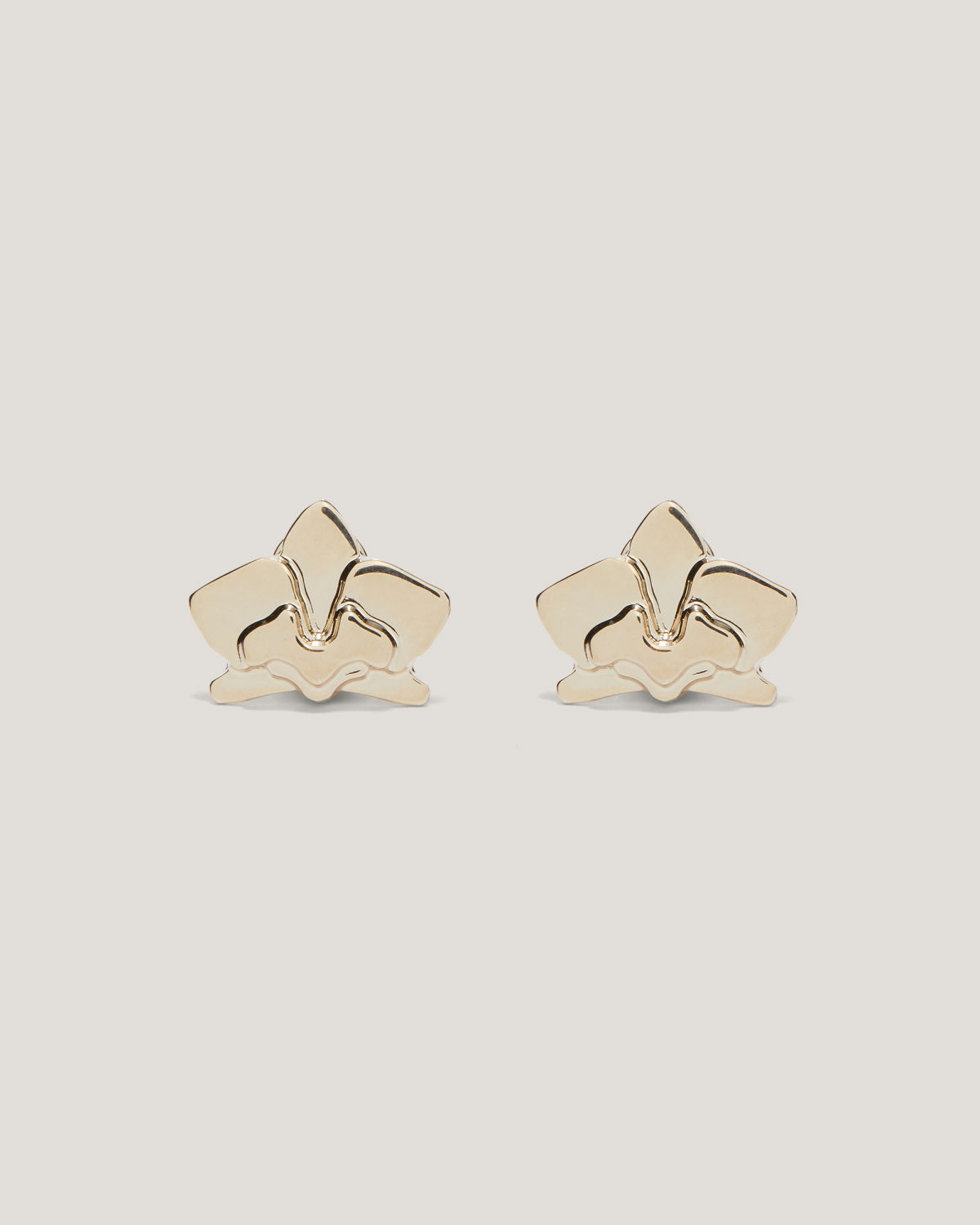 These elegant orchid-shaped earrings are crafted from polished metal, beautifully reflecting the light and adding a subtle touch of glamour to any look. Their minimal and timeless design makes them versatile for both casual and formal occasions. The delicate floral motif offers a feminine and sophisticated accent, making them refined.