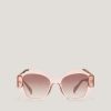 These sunglasses combine femininity and boldness in a powder-pink geometric frame. The multicolored crystal embellishments bring a refined sparkle to the design, adding a distinctive and luxurious flair. Gradient lenses ensure comfortable vision and protection.