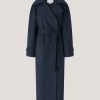 Long trench coat featuring an elegant waist belt and tailored details such as strap cuffs. The silhouette is fluid, with classic lapels and softly structured sleeves. Made from a wool and cashmere blend, it boasts a velvety texture that offers both structure and comfort. Perfect for completing cold-season looks with effortless elegance.