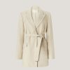 This deconstructed flannel jacket features a soft cut and a waist belt that defines the silhouette. The design is completed with peak lapels, flap pockets, and a regular fit, with a hip-length cut for versatile elegance. The fitted line gently highlights the waist.