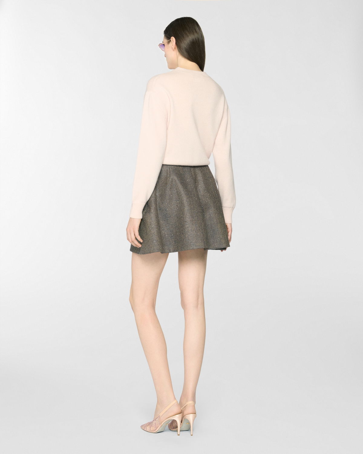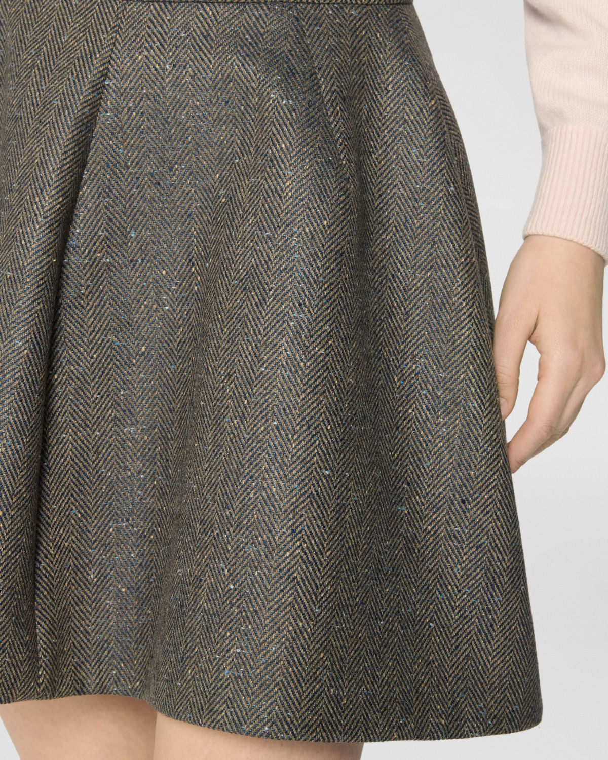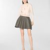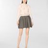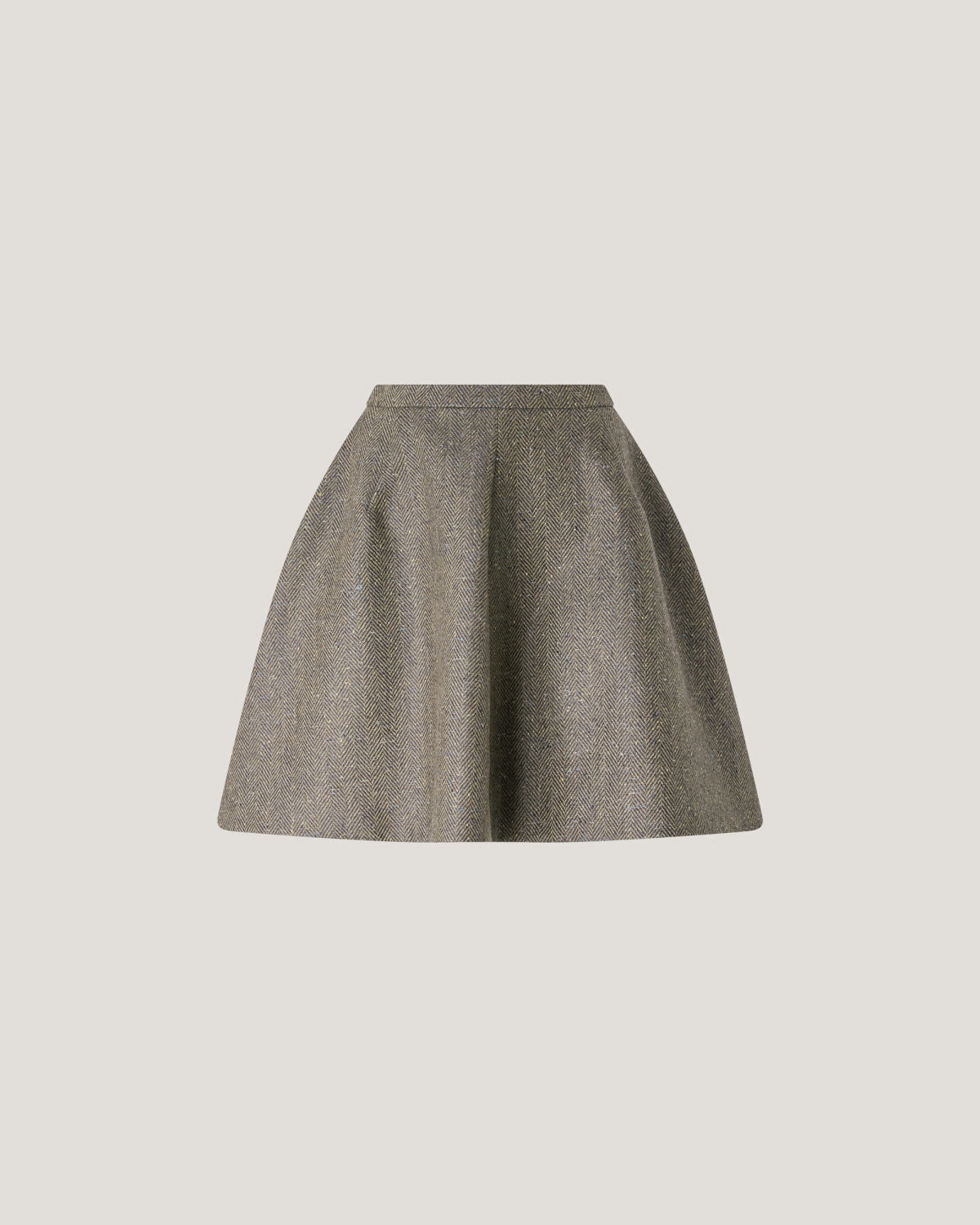 High-waisted flared mini skirt defined by a clean waistband. Crafted from a wool-blend fabric, it features a feminine, dynamic silhouette—perfect for interpreting contemporary urban style with elegance.