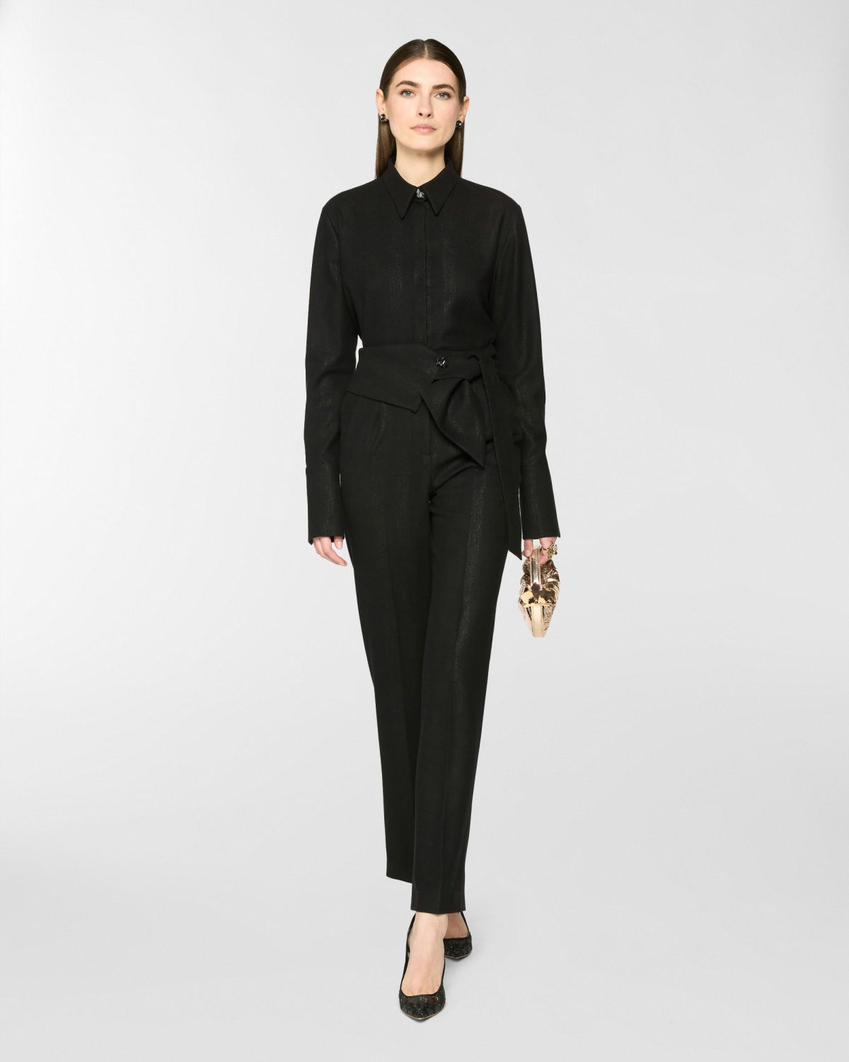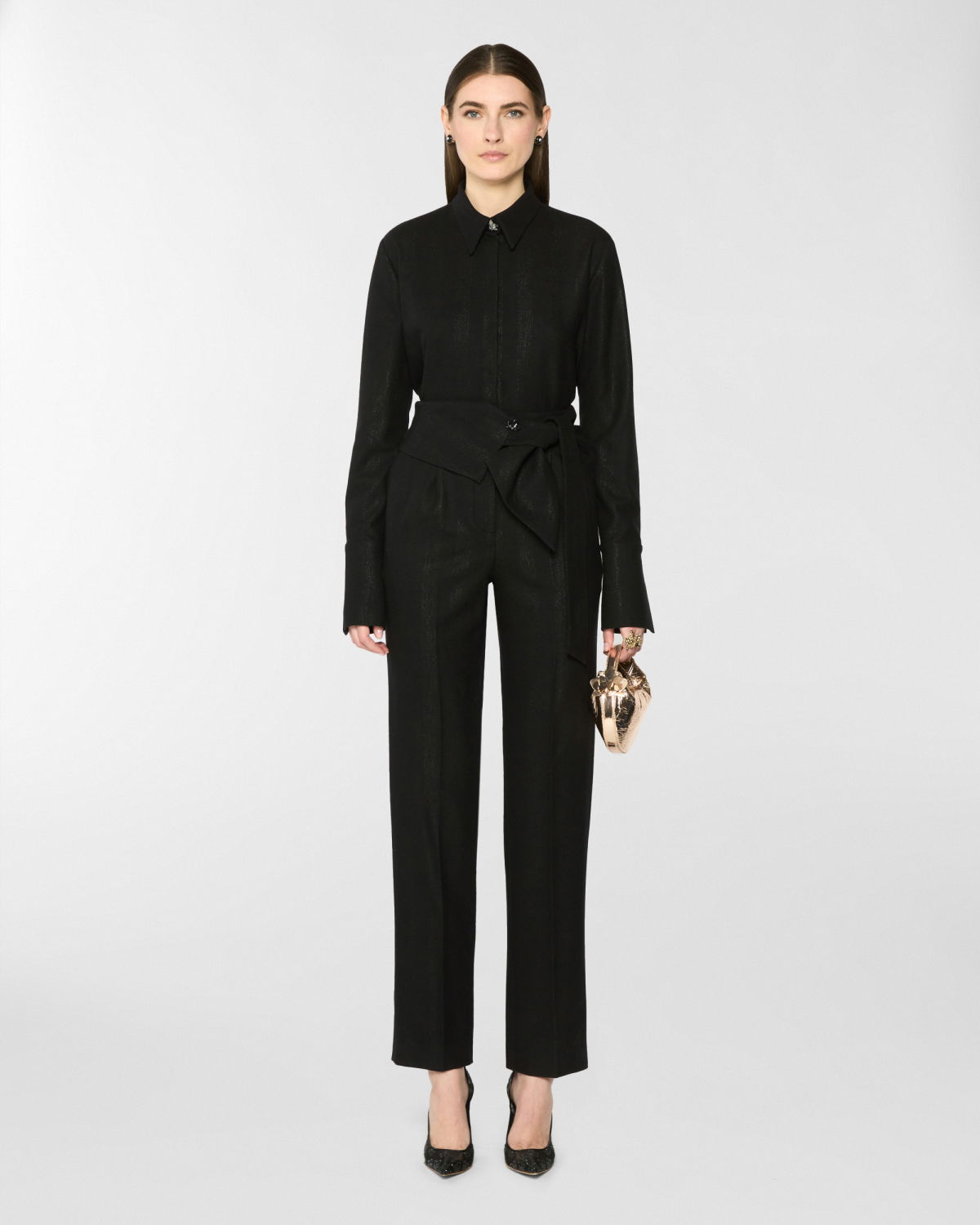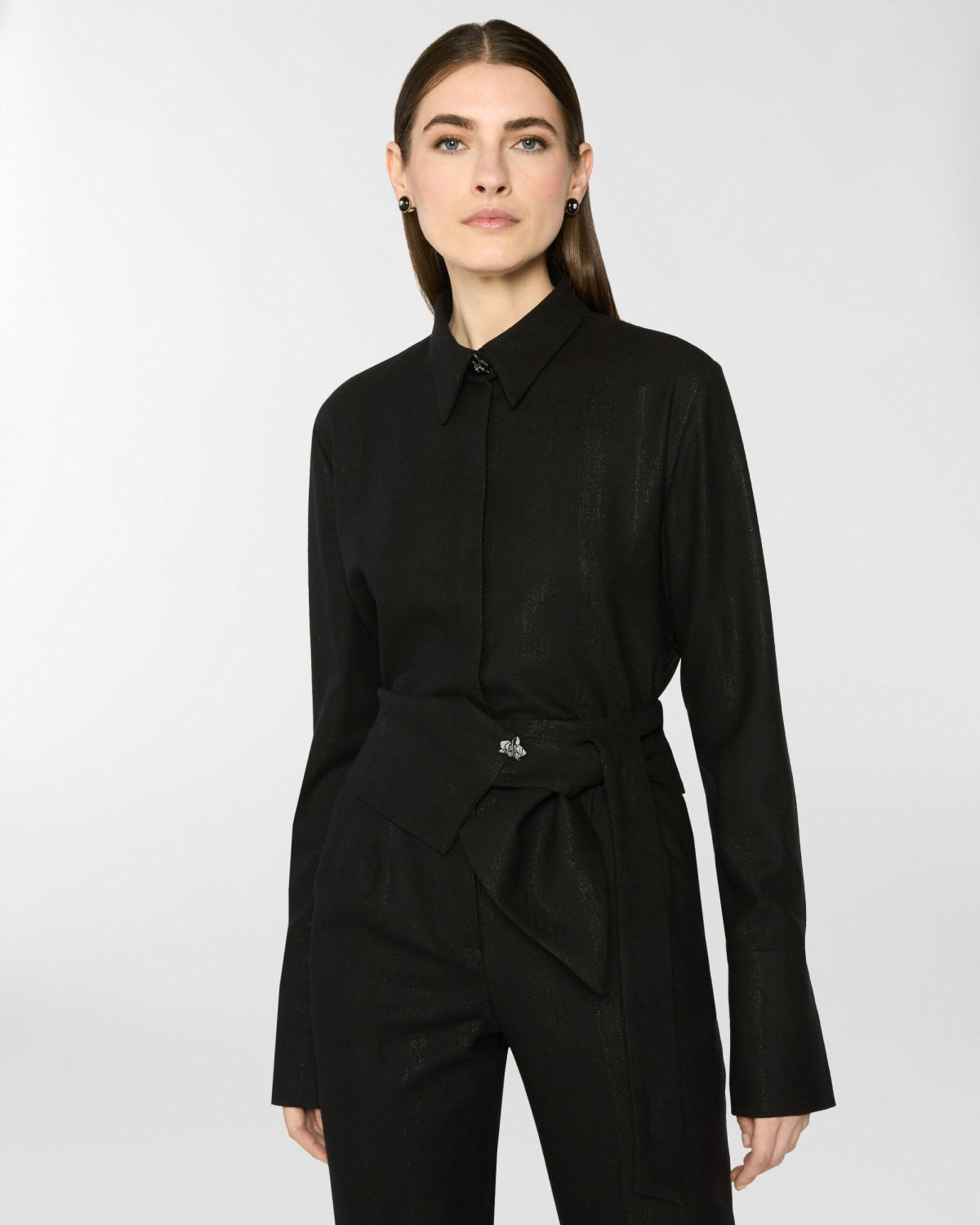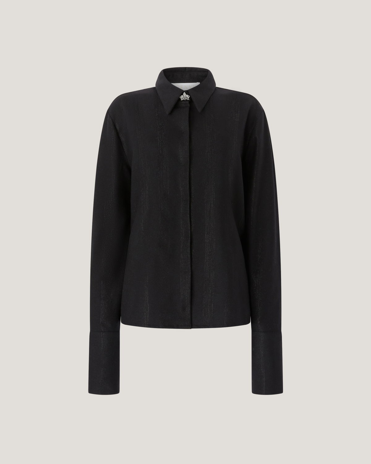 This regular-fit shirt is crafted from a fluid fabric with subtle luminous reflections. The classic collar and concealed button placket create a clean, sophisticated look, while the high cuffs with slits and side openings add a tailored touch. A three-dimensional plaque, evoking the Maison iconic orchid, delicately adorns the collar.