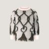This crew-neck pullover features a regular fit and hip-grazing length, crafted from pure wool that lends a soft, airy texture. The pattern evokes the effect of tassels, reinterpreting a vintage symbol of the Maison. Sleeves that fall above the elbow add a modern touch to a piece that blends comfort and style.