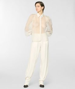 Long vest crafted from structured wool, featuring a refined shawl collar and slightly dropped shoulders that add fluidity to the design. The subtly tapered silhouette and side slit pockets enhance its versatility, making it perfect to layer over dresses or shirts for a sophisticated, modern look.