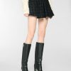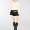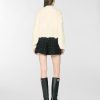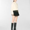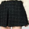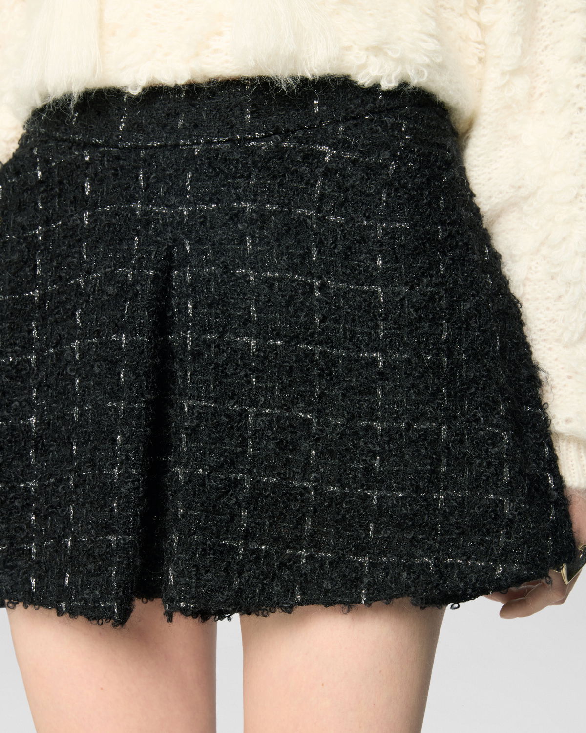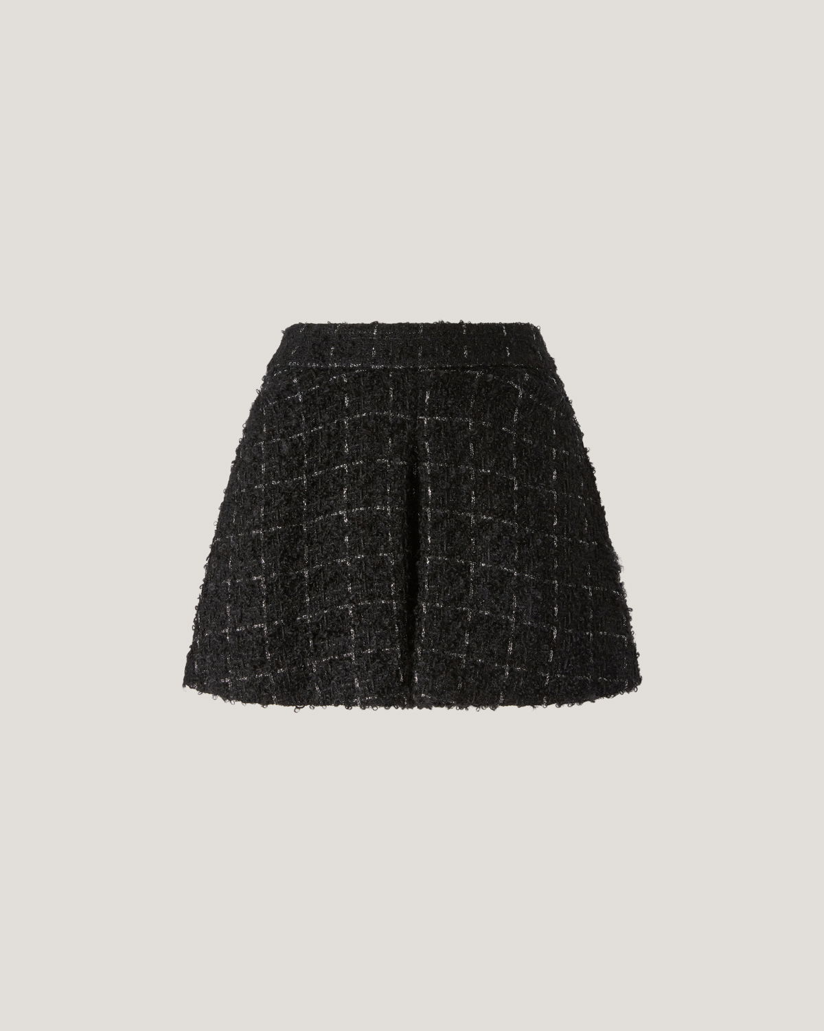 High-waisted shorts featuring a tailored waistband and a flared cut that gently follows the figure. Crafted from wool bouclé with lurex threads, they offer a three-dimensional texture and a refined check pattern. Perfect for sophisticated and contemporary looks.