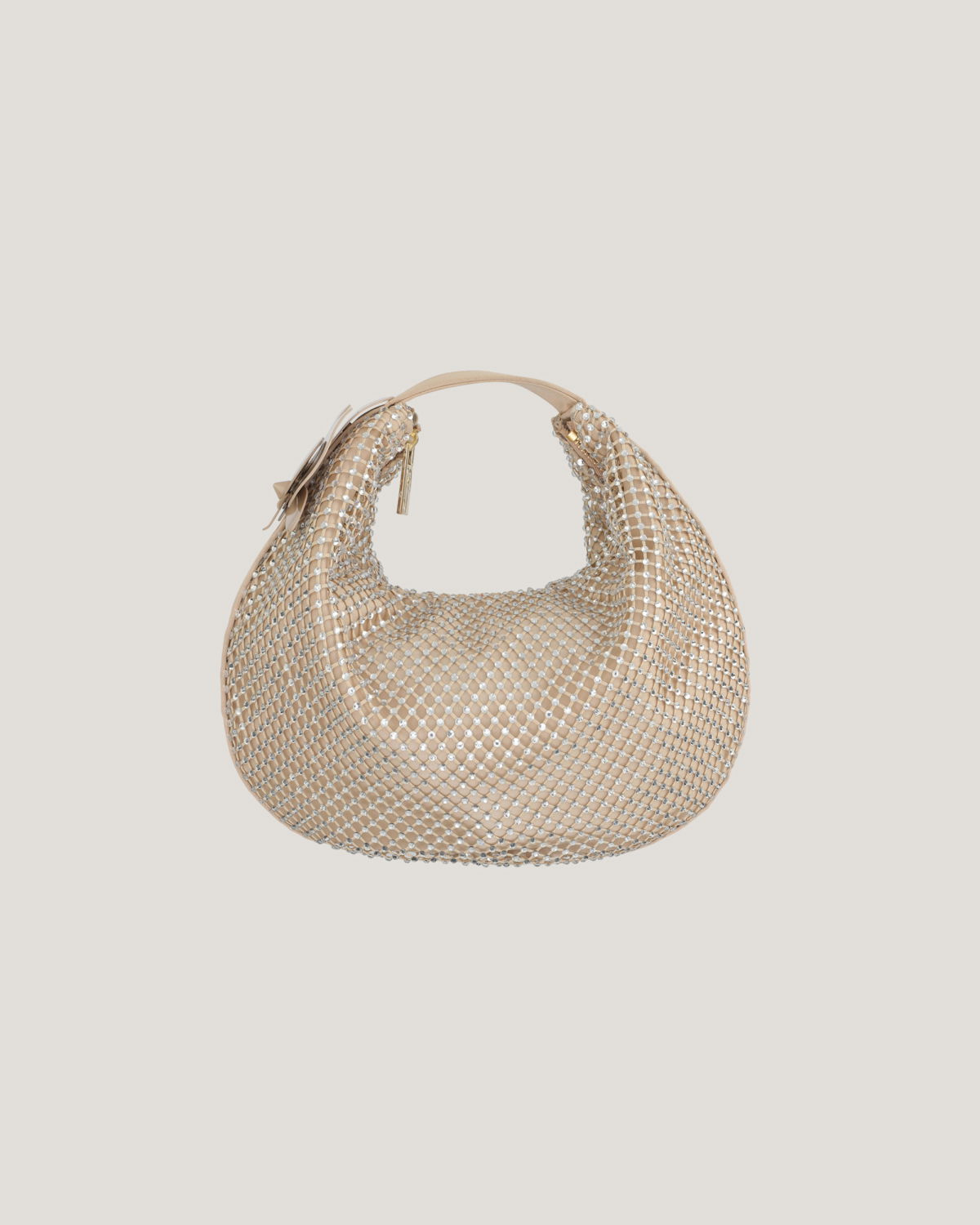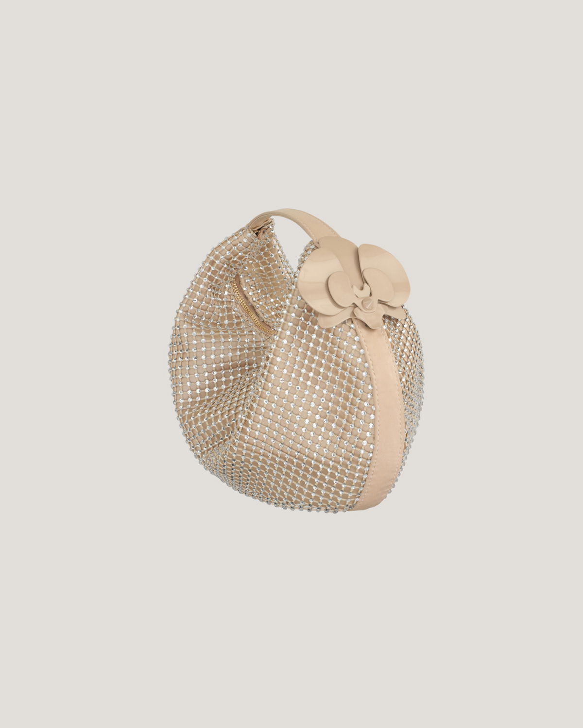 Creative Director Sara Cavazza has skillfully crafted a semi-spherical shape, softened by the material folds, giving it an aura of exclusivity and style. The orchid metal brooche, which elegantly define the boundarie of Fortune, represent the distinctive aesthetic signature of the timeless femininity of the house. By choosing the rhinestone version, you will enhance the iconic nature of Fortune, which will become a symbol of elegance and boldness.