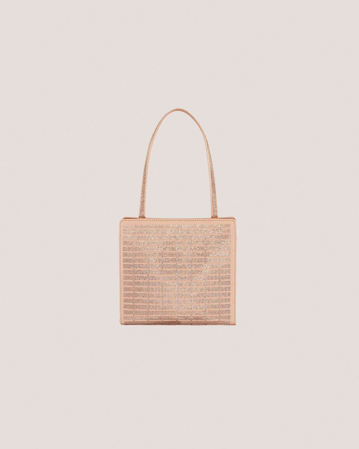 This bag stands out for its sophisticated and modern elegance, enhanced by sparkling rhinestone details that add a touch of glamour. The sleek design features a compact rectangular shape, perfect for carrying your essentials in style. The shoulder strap, crafted from leather with rhinestone accents, offers comfortable and chic wear, making it ideal for special evenings and occasions when you want to shine. Expertly crafted, this bag combines the elegance of satin with the brilliance of rhinestones, delivering a refined and distinctive look.