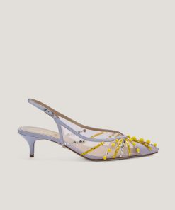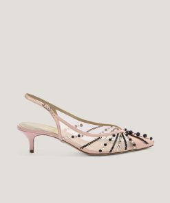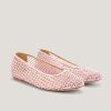 These ballet flats are crafted from transparent mesh, embellished with delicate microbeads and tonal rhinestones that add a sophisticated and elegant sparkle. The combination of lightweight materials and exquisite details makes these shoes perfect for adding a touch of glamour to any occasion while ensuring maximum comfort. The transparent upper is embellished with meticulously applied rhinestones, while the leather insole ensures all-day comfort. The pink tone adds a romantic and contemporary flair, making these flats the perfect accessory for any outfit.
