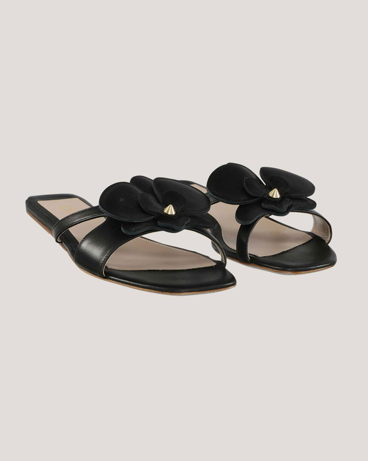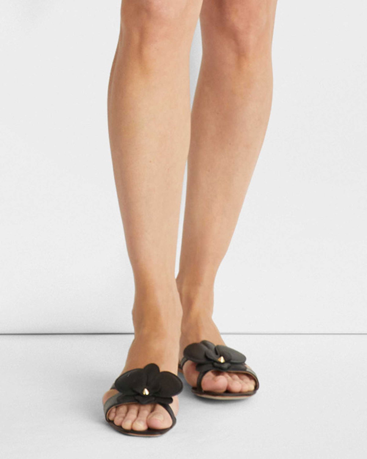Flat sandals with orchid decoration elegantly adorn the foot and feature the brand’s logo. Together, they create an upper that ensures maximum comfort. The practical slip-on design makes these low shoes a summer essential.