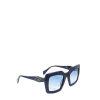 These square sunglasses, made with a tortoiseshell blue tonality, are designed in a modern shape with an elegant line. The gradient blue lenses give a modern finish, while the temples have a golden metal detail with the Maison’s signature.