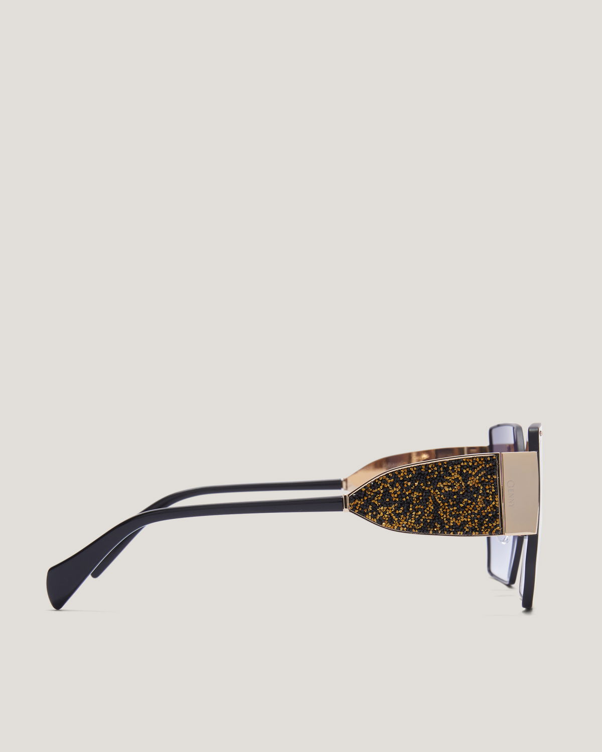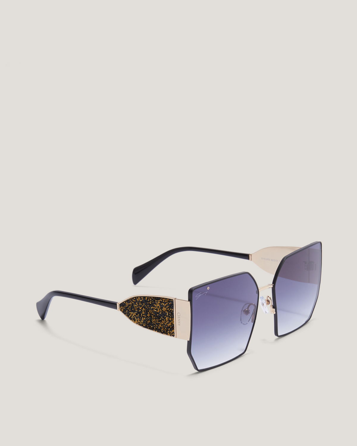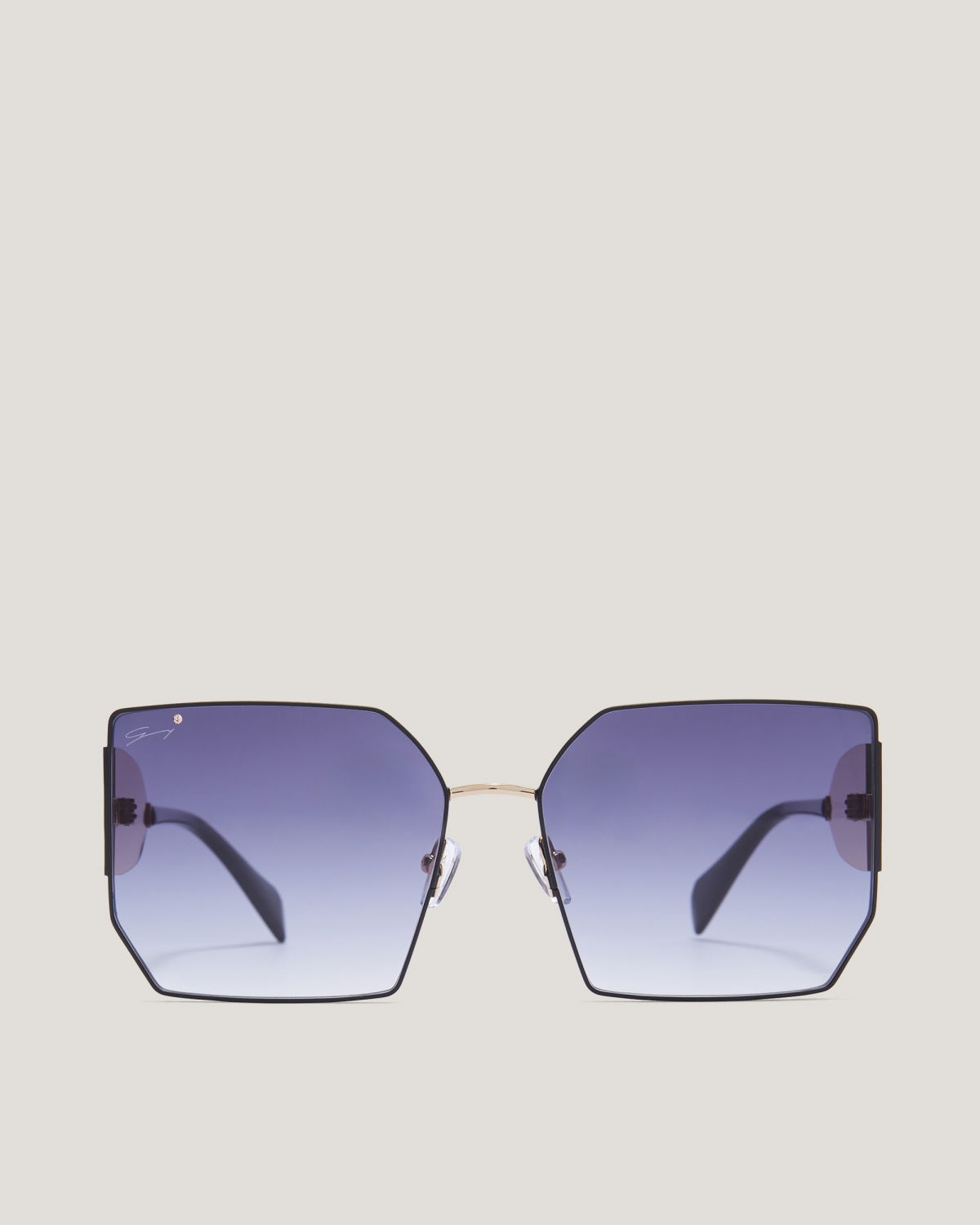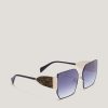 These square sunglasses exude a feminine and elegant attitude, thanks to the lightweight construction with a thin black frame. The oversized shape and solid purple lenses allow you to showcase your soft and playful side, while the temples enriched with glitter and logo make these women’s sunglasses a perfect statement piece. The item is perfect for completing an elegant and refined Genny look.