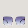 These square sunglasses exude a feminine and elegant attitude, thanks to the lightweight construction with a thin black frame. The oversized shape and solid purple lenses allow you to showcase your soft and playful side, while the temples enriched with glitter and logo make these women’s sunglasses a perfect statement piece. The item is perfect for completing an elegant and refined Genny look.